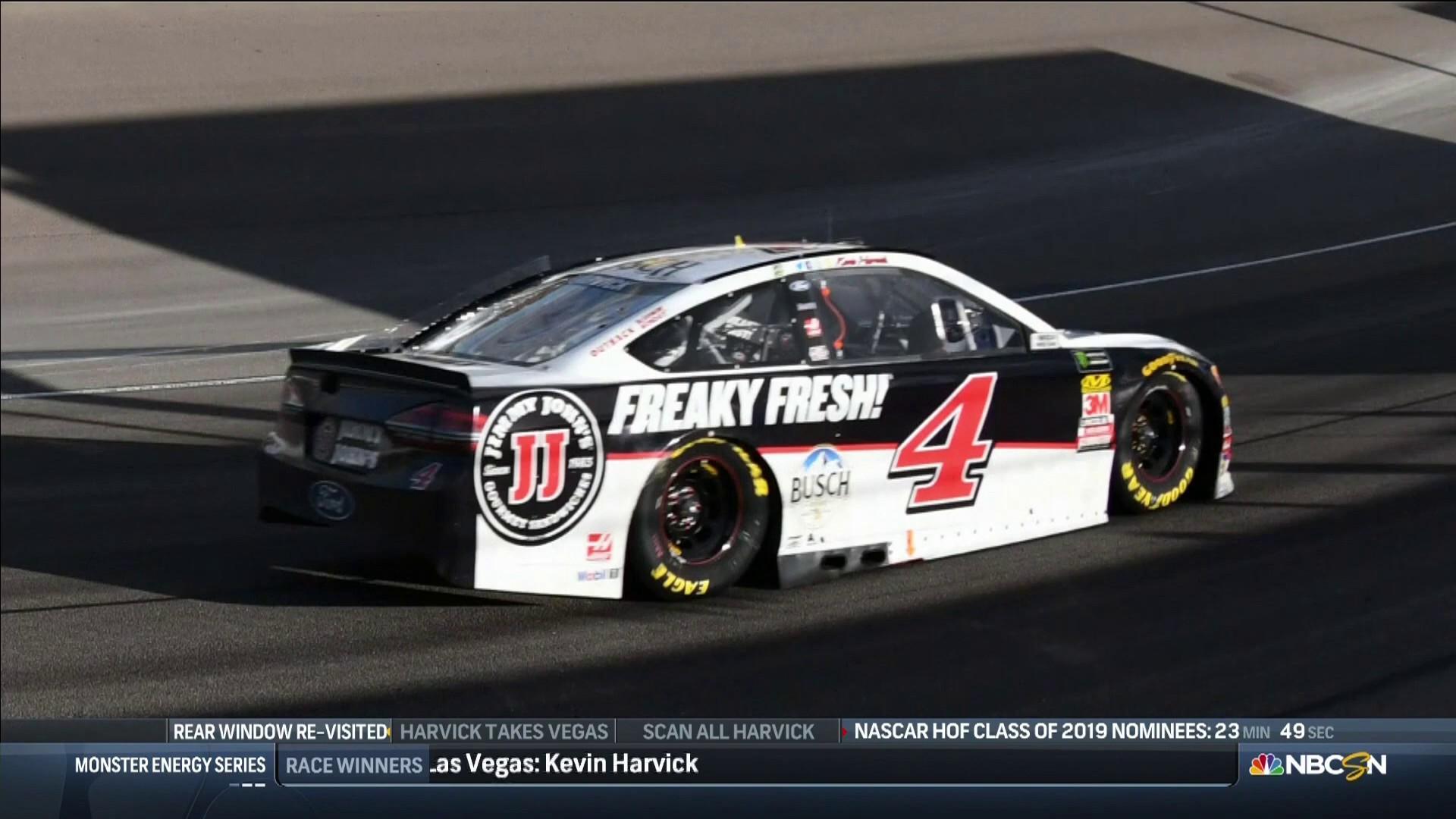 It turns out NASCAR did not like the bowed rear window of Kevin Harvicks winning car from Las Vegas Motor Speedway. The open window allows drivers to get in and out of the car as many race cars do not have traditional doors. Kevin Harvicks rear window at Las Vegas Motor Speedway. The penalty comes from a rear window violation found at the NASCAR RD Center after multiple cars were taken back for wind tunnel testing including Elliotts No.